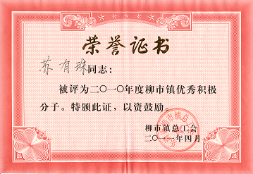 4月30日早上,柳市鎮(zhèn)召開了慶?!拔逡弧眹H勞動節(jié)暨關(guān)于表彰2010年度工會先進(jìn)集體和優(yōu)秀個(gè)人的表彰大會,本次會議旨在回顧總結(jié)全鎮(zhèn)工會在2010年的工作,研究部署2011年工作任務(wù)。大江控股集團(tuán)財(cái)務(wù)部經(jīng)理、集團(tuán)愛心基金會理事長蘇有珠同志憑借其優(yōu)秀的工作表現(xiàn)榮獲“柳市鎮(zhèn)2010年度工會積極分子”稱號。