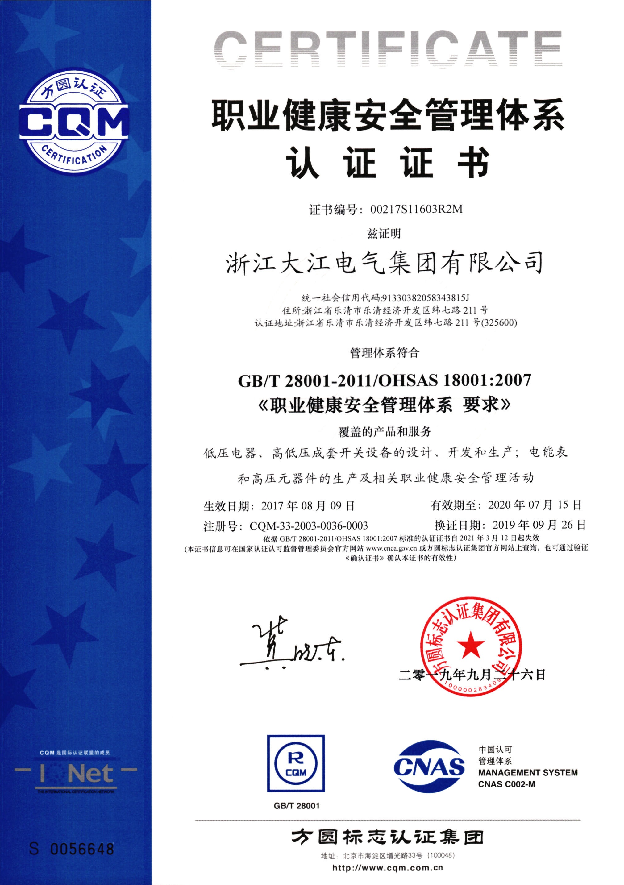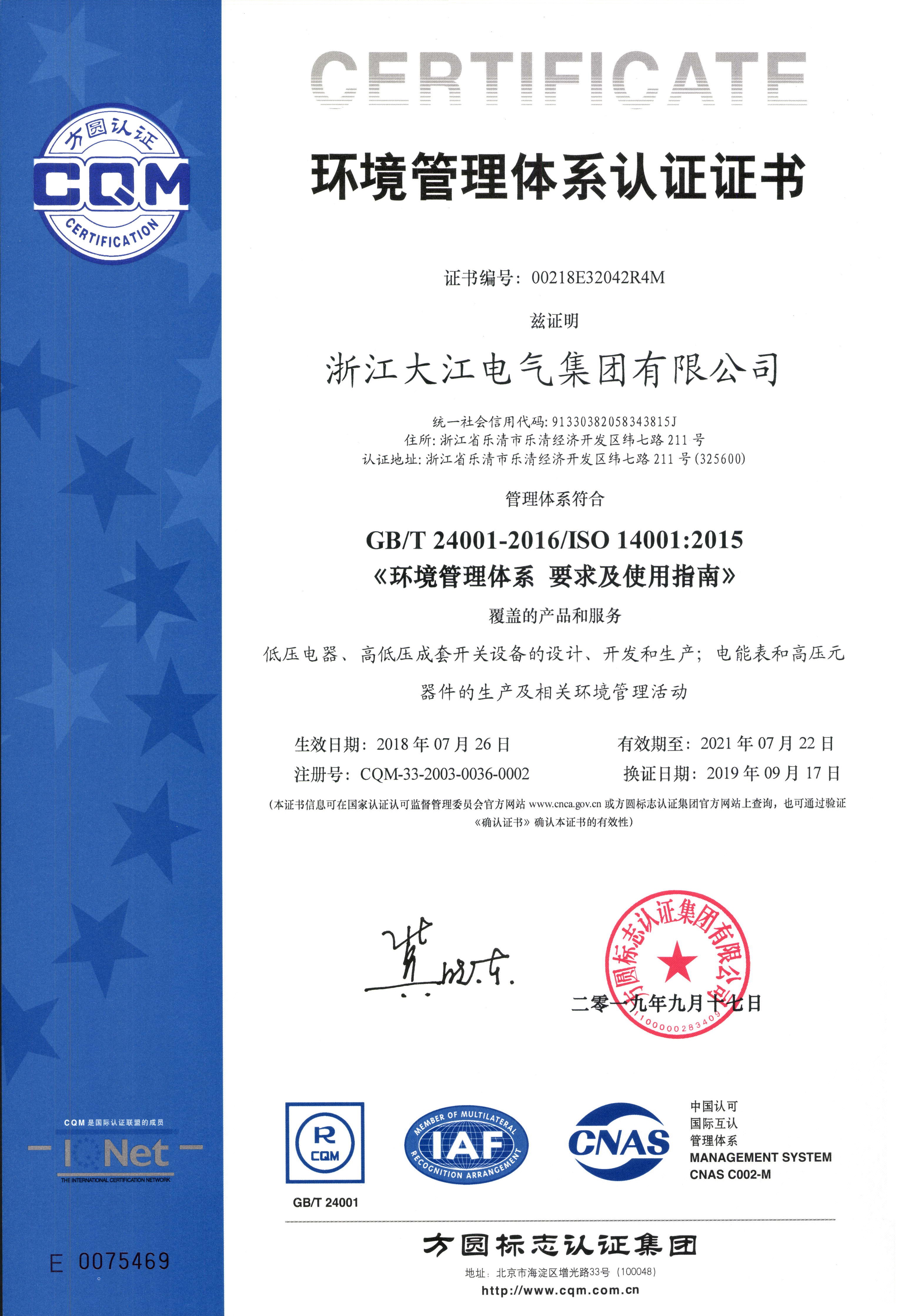 環(huán)境管理體系認(rèn)證證書(shū)