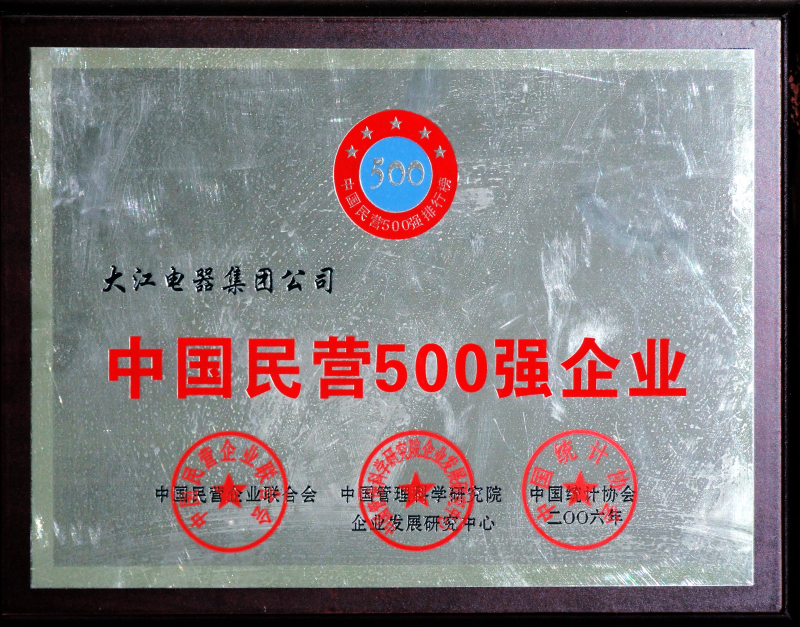 - 2006年中國民營500強(qiáng) 榮譽(yù)證