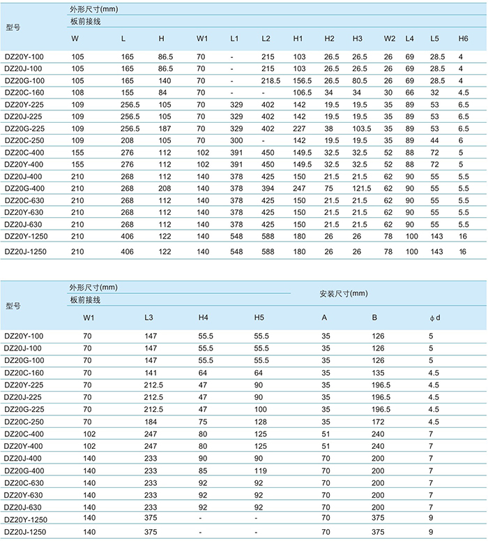 DZ20Y塑料外殼式斷路器